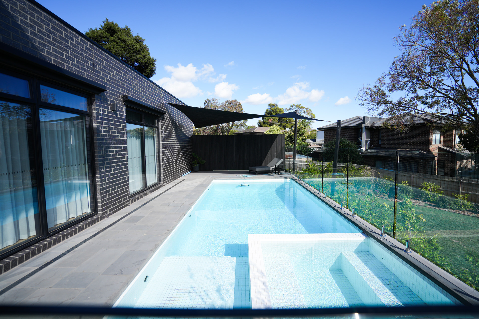 We especially love the expansive swimming pool, charred timber cladding, and pivot hinge hardwood Victorian Oak front door.