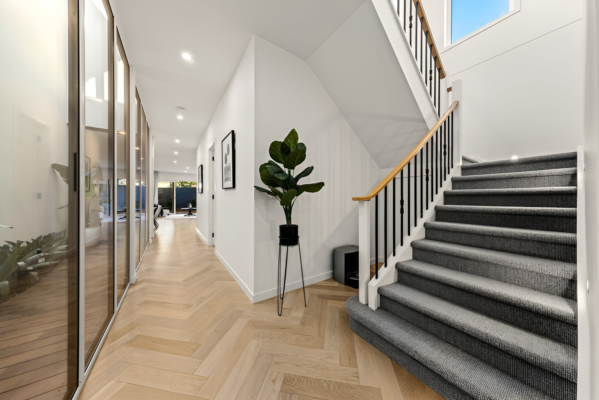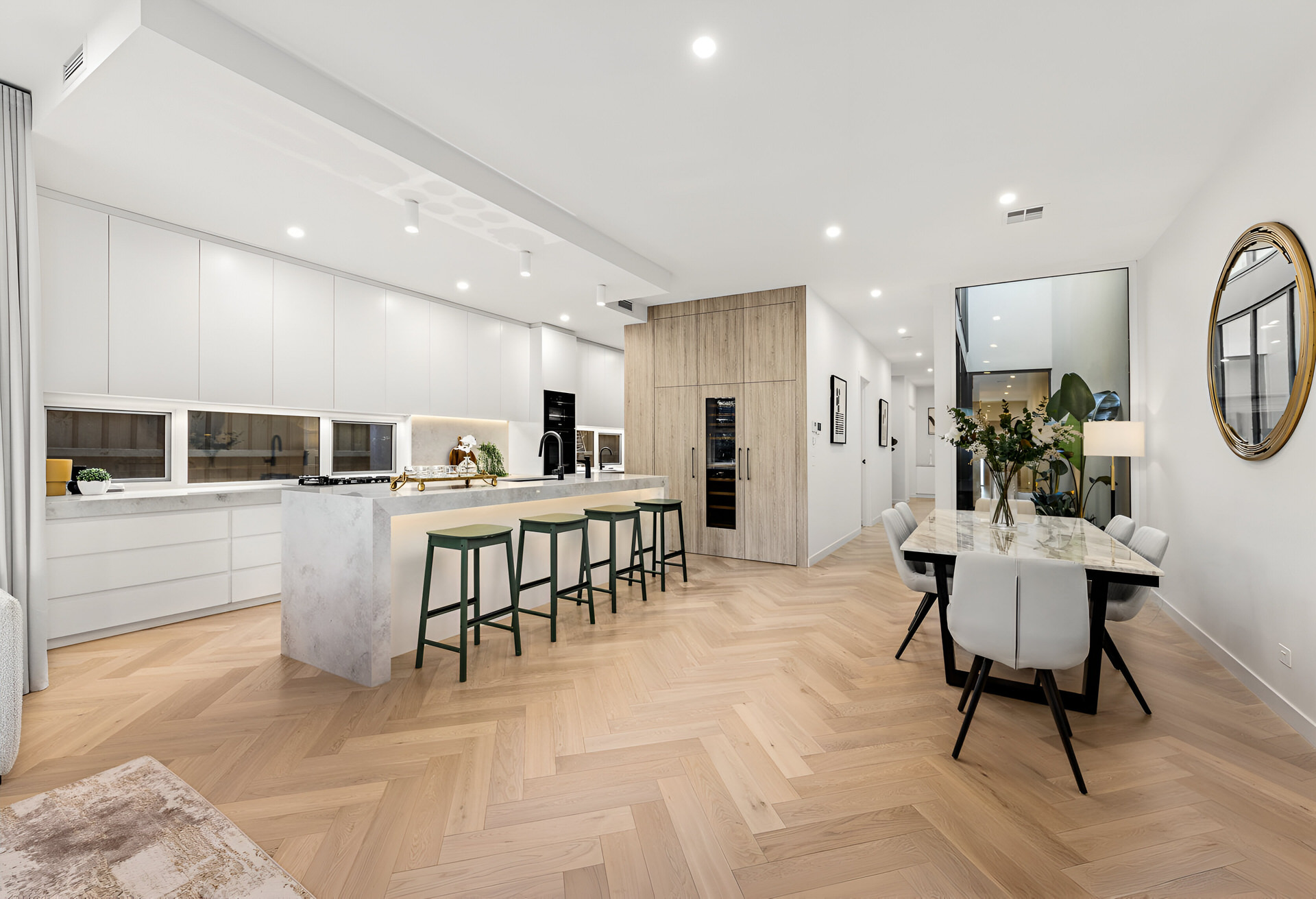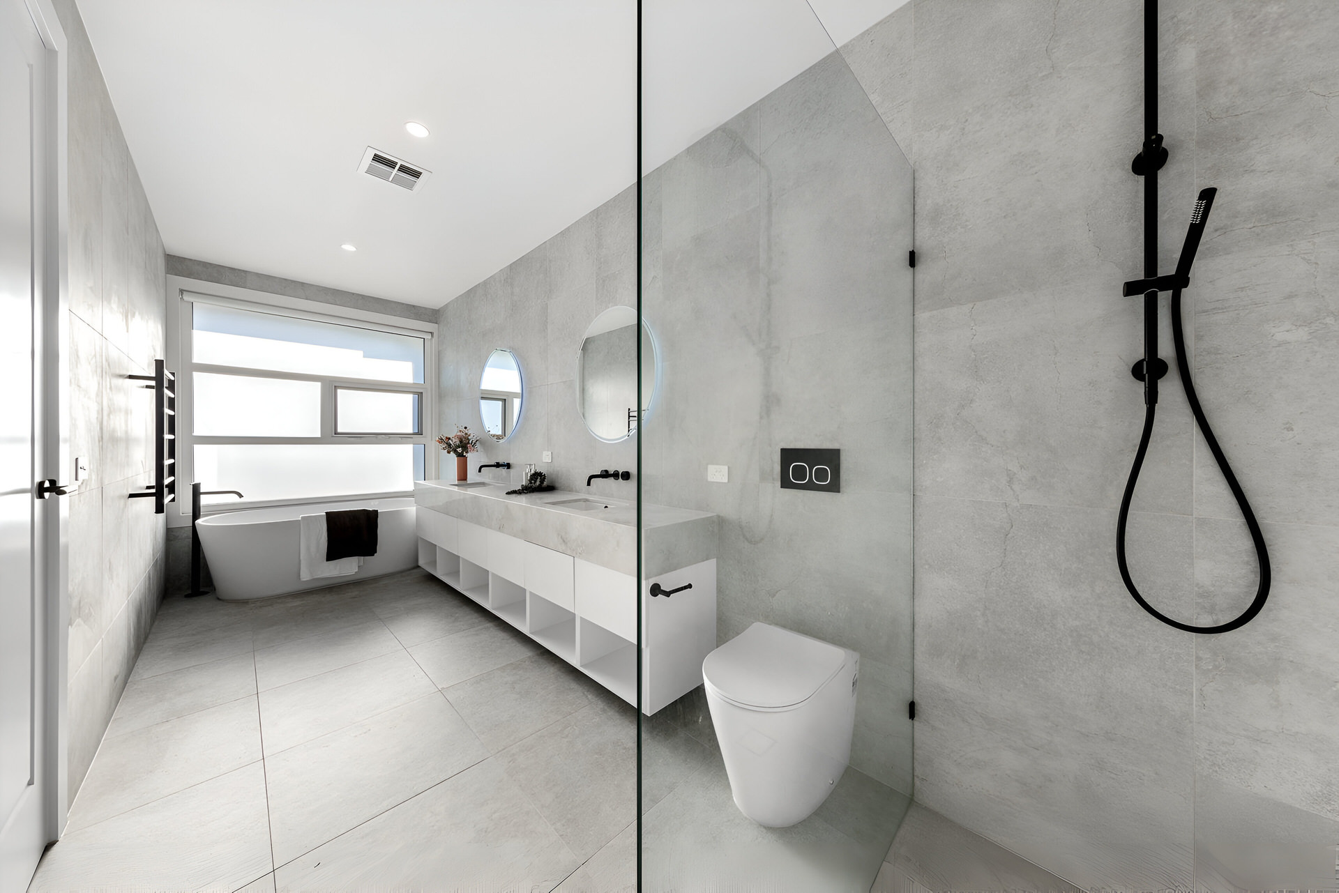 This double-storey side-by-side duplex project features 4 bedrooms, 4 bathrooms, and double lock-up garages, ensuring that each unit feels as spacious as possible.