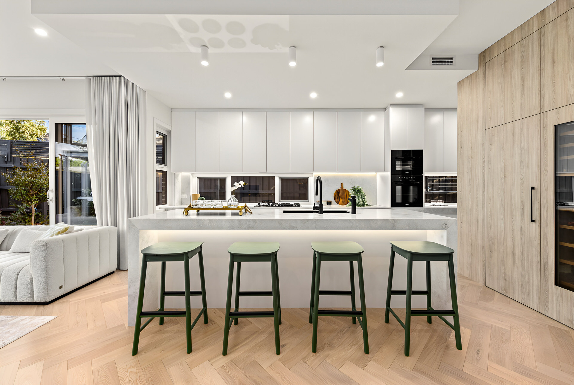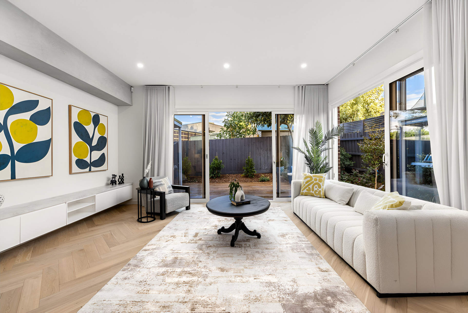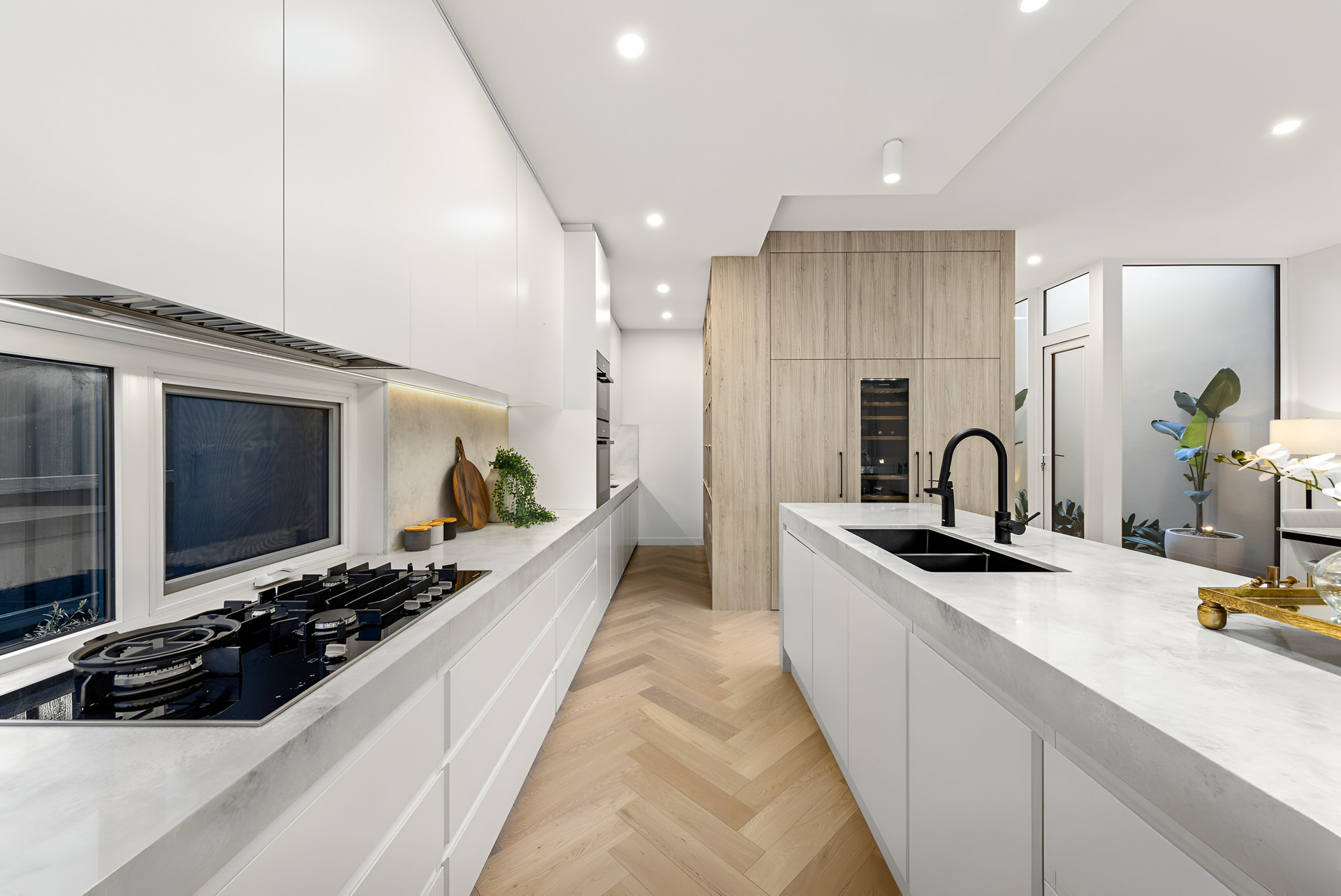 This double-storey side-by-side duplex project features 4 bedrooms, 4 bathrooms, and double lock-up garages, ensuring that each unit feels as spacious as possible.