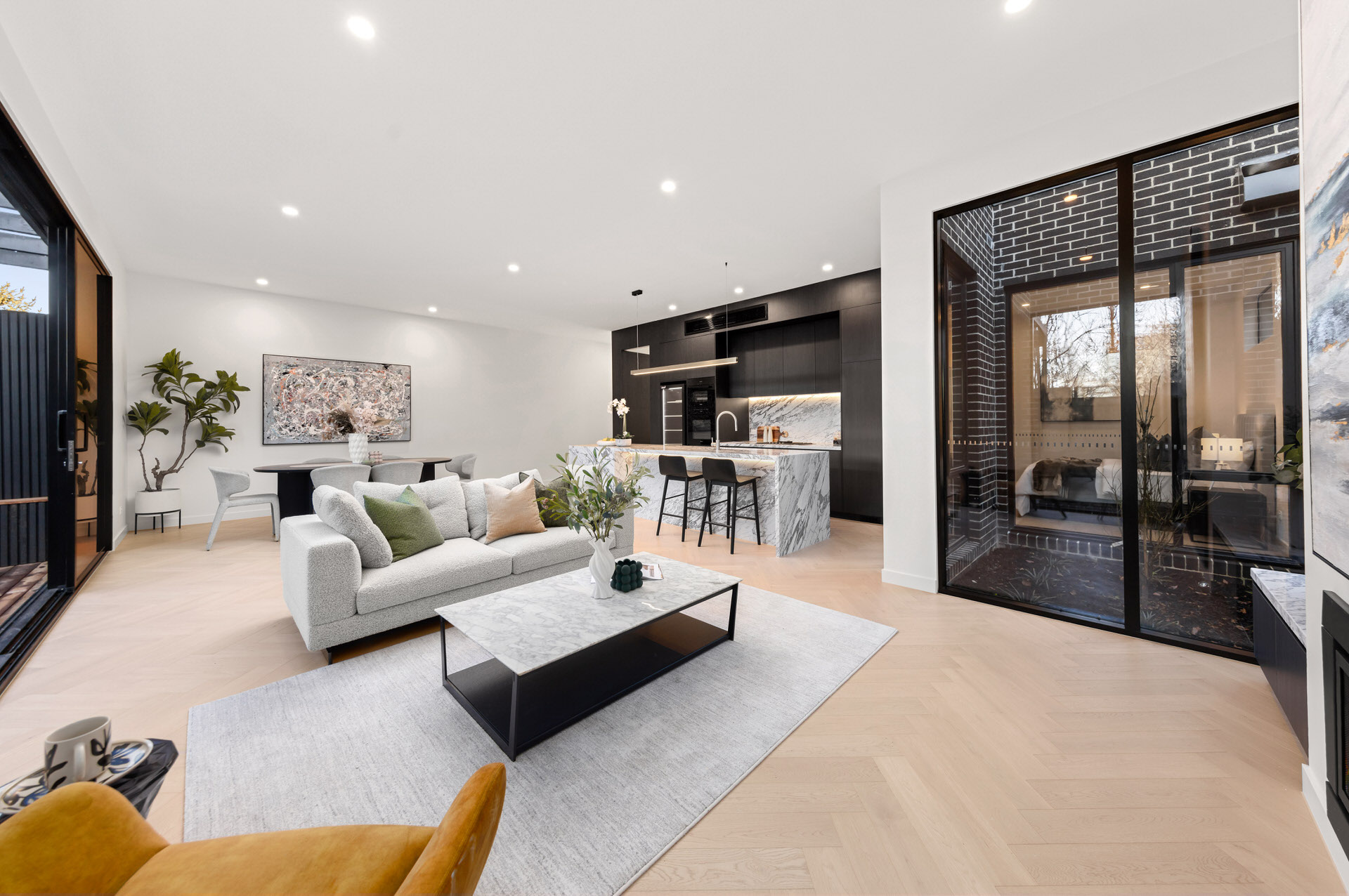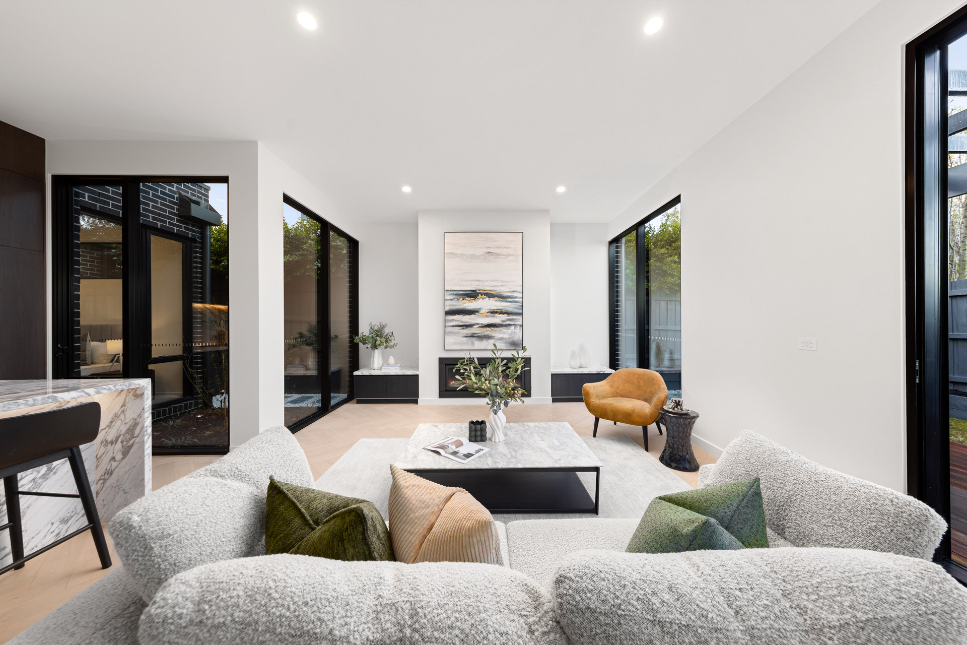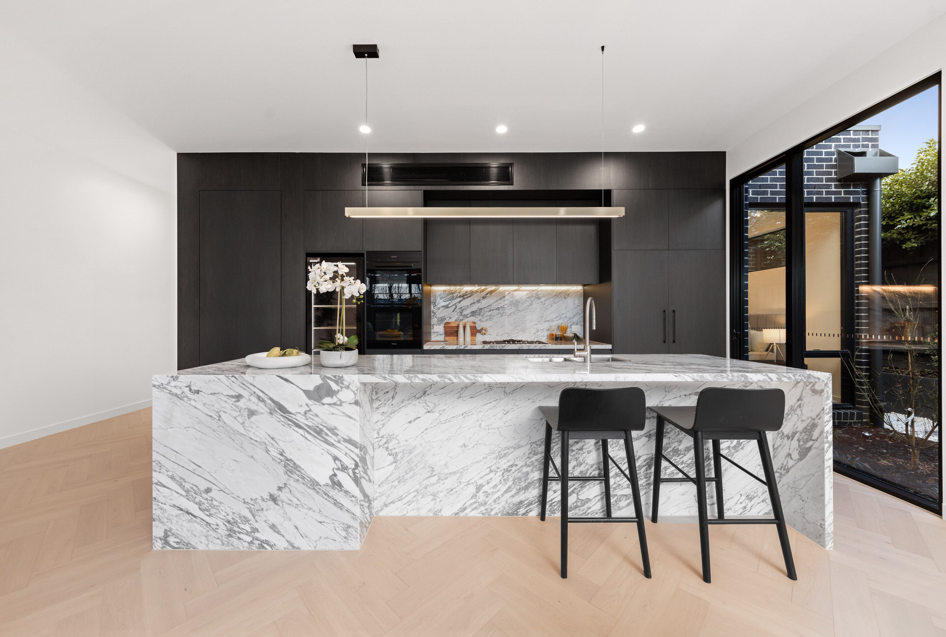 Each home features soaring entry windows, an abundance of light, and four bedrooms with four bathrooms. Concealed butler’s pantries, premium Miele appliances, and refined finishes add both practicality and elegance.