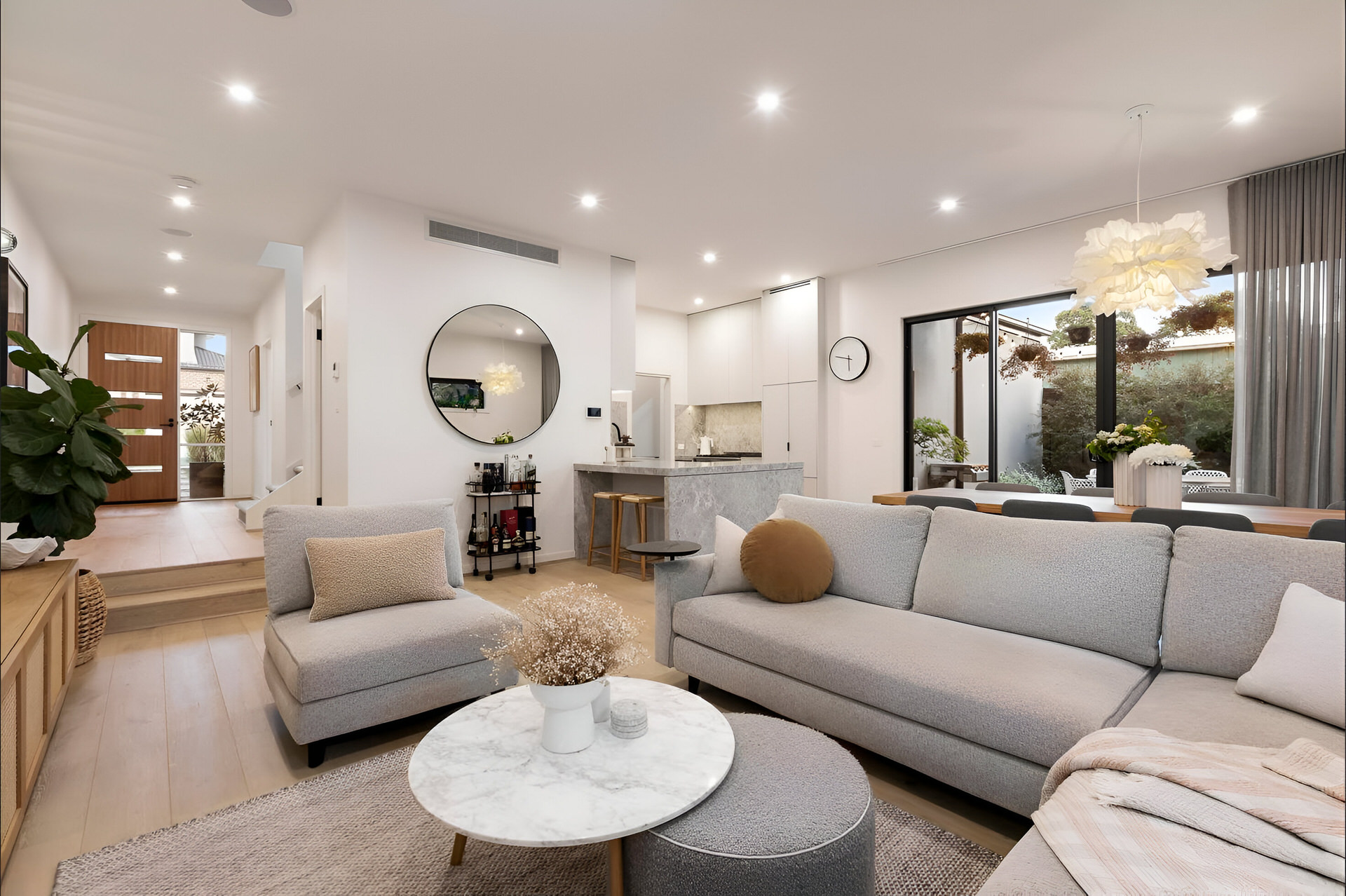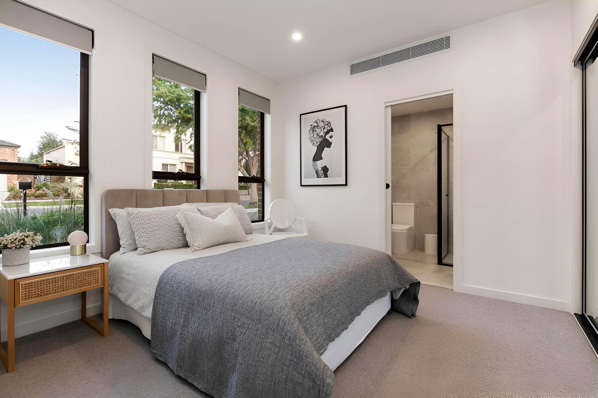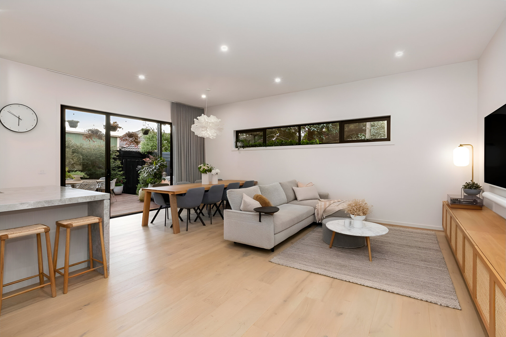 Built on a corner block in Doncaster East, Greendale is a trio of townhouses designed to combine development potential with liveable luxury. One of the residences was crafted specifically for the owner to call home, ensuring a personal focus on quality and long-term value.